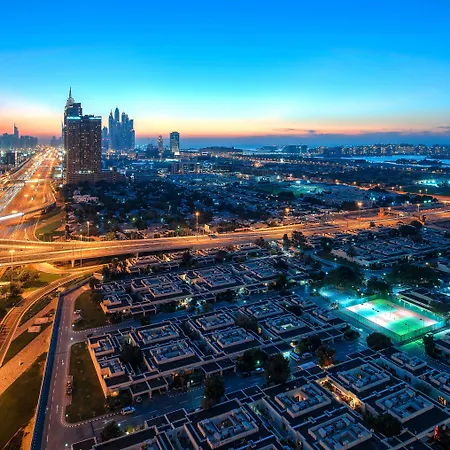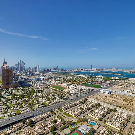 Palm Jumeirah is placed 10 minutes away by car, and the 36 - hole Emirates Golf Club is 10 minutes' drive from the 45-story La Suite Dubai Hotel & Apartments.